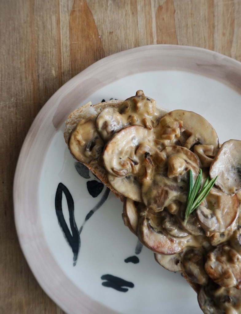 The ingredients are super simple: bread, olive oil, mushrooms, shallots, garlic, salt, pepper, rosemary, dijon mustard and double cream. The great thing as well is that you can adapt the creamy-ness of the mushrooms depending on how creamy you want it, the first time I made this I didn’t add much double cream, but after that I started adding a bit more.