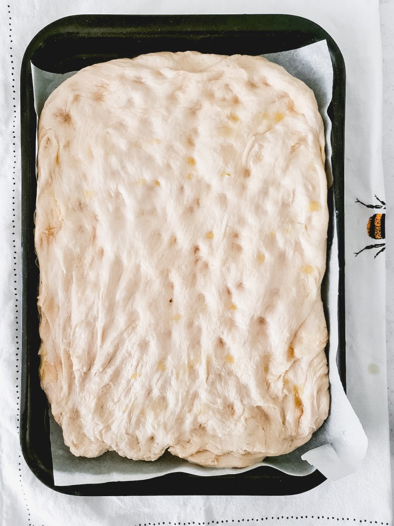 - Pour some oil on top and leave the focaccia to rise for at least 1 hour, I left mine for 3 and it had a great shape!