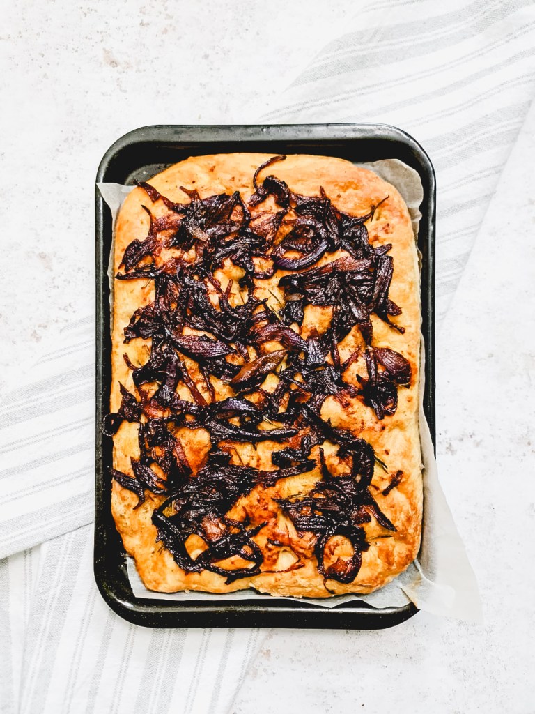 Who doesn’t love a bit of focaccia and a bit of caramelised onion? I really think it’s one of the best combinations which goes with pretty much everything and the warm weather is making me want to have some focaccia pretty much all the time!