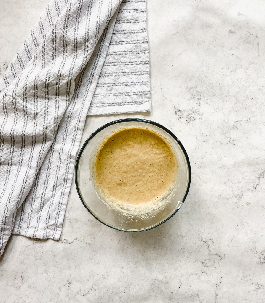 - Onced combined, add in the flour, baking powder and salt, mix again until well combined and there are no lumps
