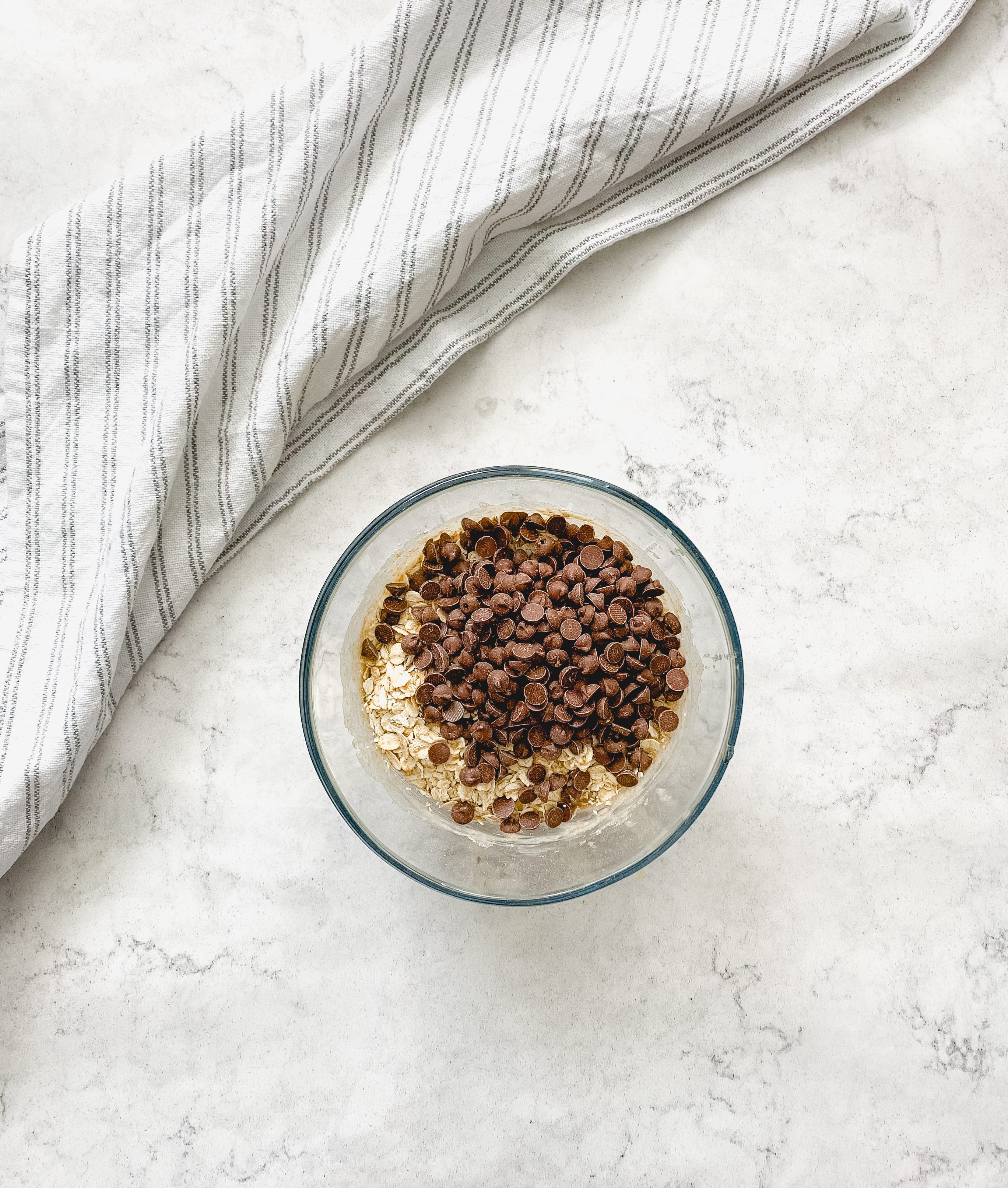 All you need to make these muffins is: vegetable oil, brown sugar, honey, milk, greek yoghurt, egg, wholemeal flour, vanilla extract, baking powder, salt, oats and chocolate chip cookies.