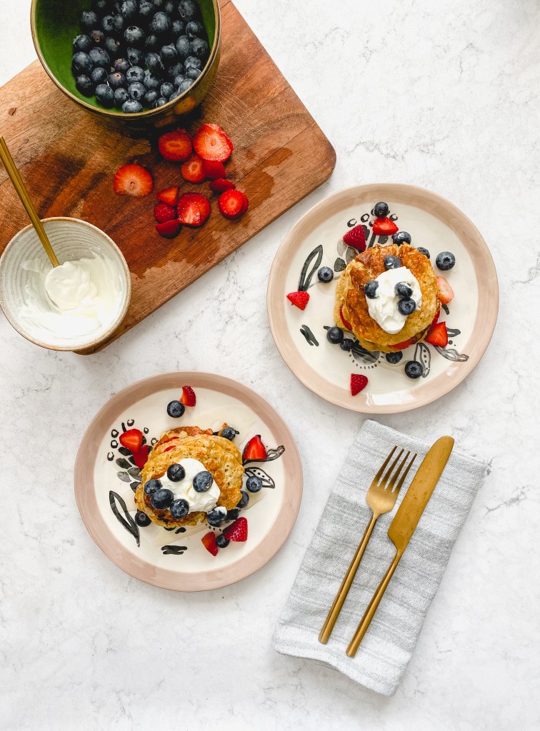These 3 ingredient pancakes are the solution to your breakfast! They feel super indulgent but they are full of protein and goodness, which means that can be eaten as often as you want. Eat them with some extra yoghurt and some fruit for a full nutritious breakfast.
