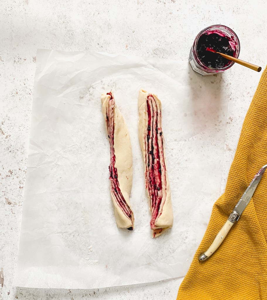 - Cut the log vertically in half and start twisting it, one side on top of the other, all the way. I started in the middle and worked my way to the bottom and then turned it around and did the same. Transfer to a baking tray and set aside for another hour. Note, this is going to be messy!