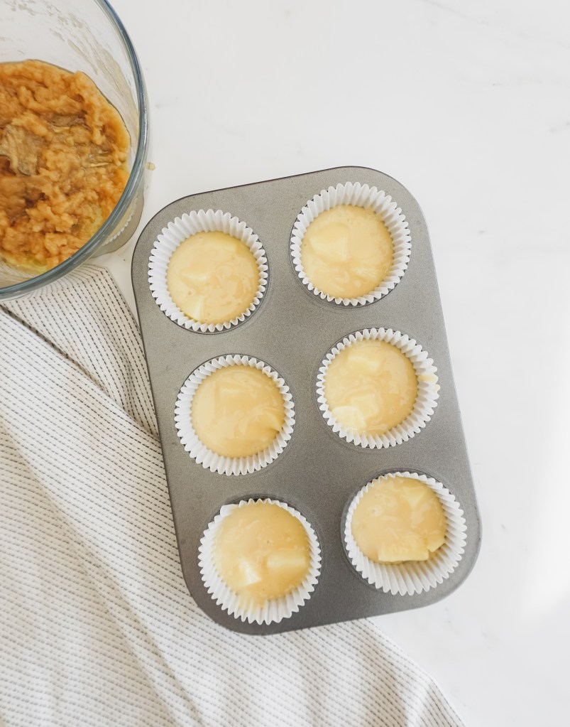 - Lastly, add in the apples and mix again. Place the muffin mix in the fridge.
