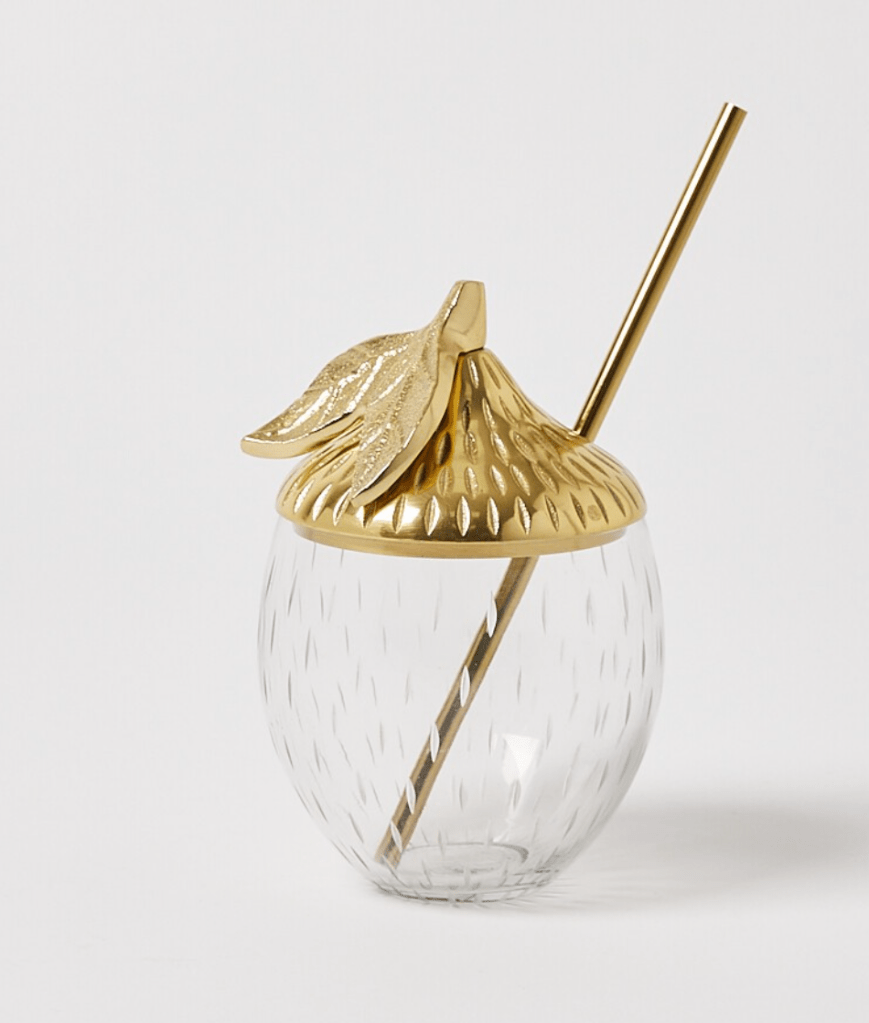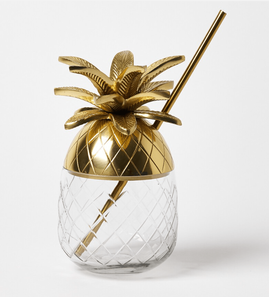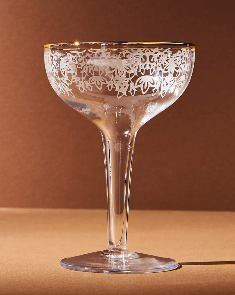 Oliver Bonas Lemon Gold & Glass Cocktail Cup (£26) and Pineapple Gold & Glass Cocktail Cup (£28.50), Anthropologie Set of 4 Elody Coupe Glasses (£48.00)