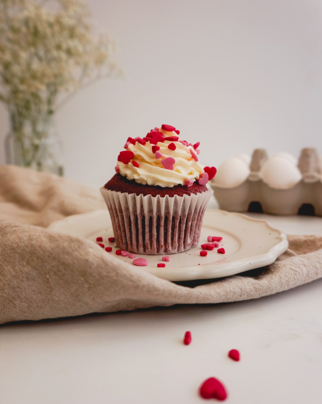 I have known for a while that I want to make something for this day, however, I was not sure what. I kept thinking about red velvet cupcakes, but I felt like it was such an obvious thing to do, a bit of a florals for spring situation, but then I thought about how nice it would be to top them with a super smooth white chocolate buttercream! A cupcake topped with white chocolate?! That I can do!