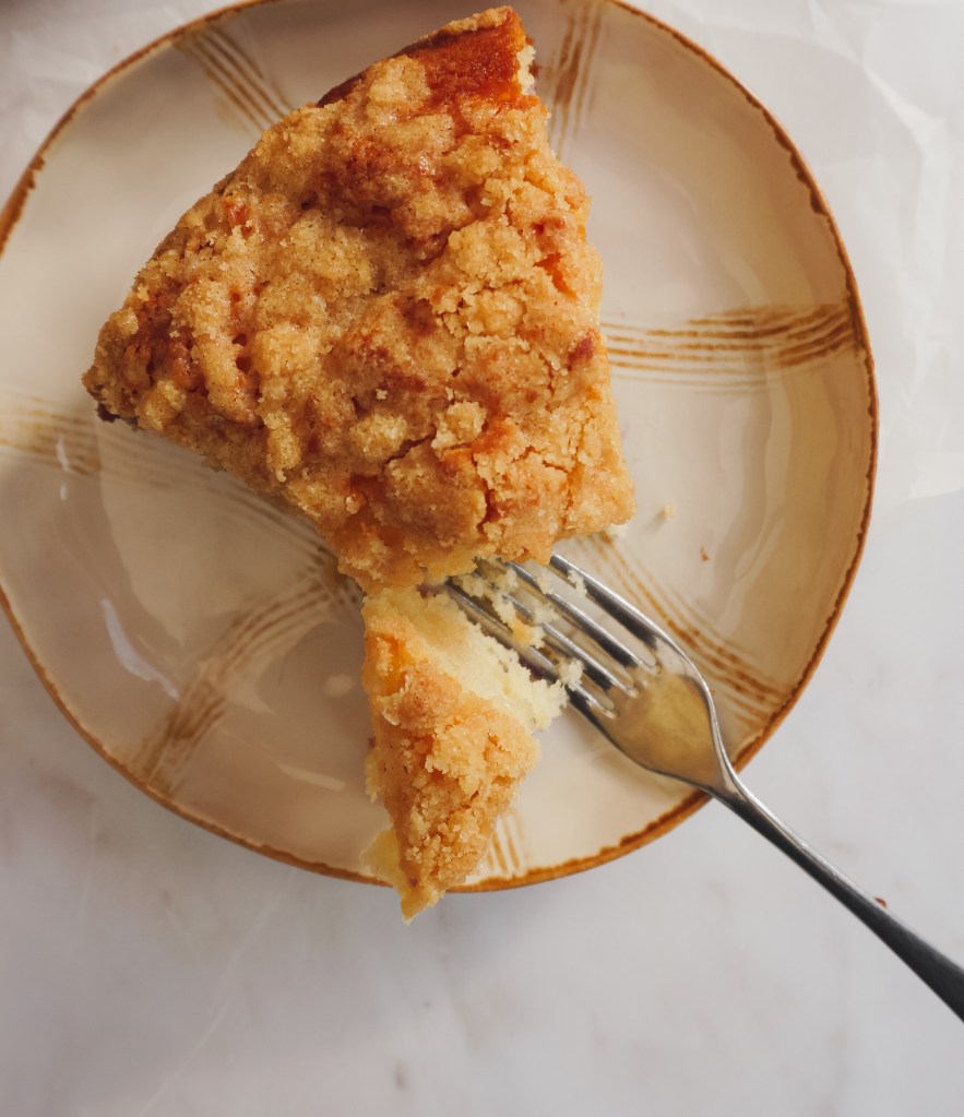 Make your streusel first and keep it in the fridge – this is particularly important if it’s hot in your house, your butter must be cold when you’re making it and also when you top your cake.