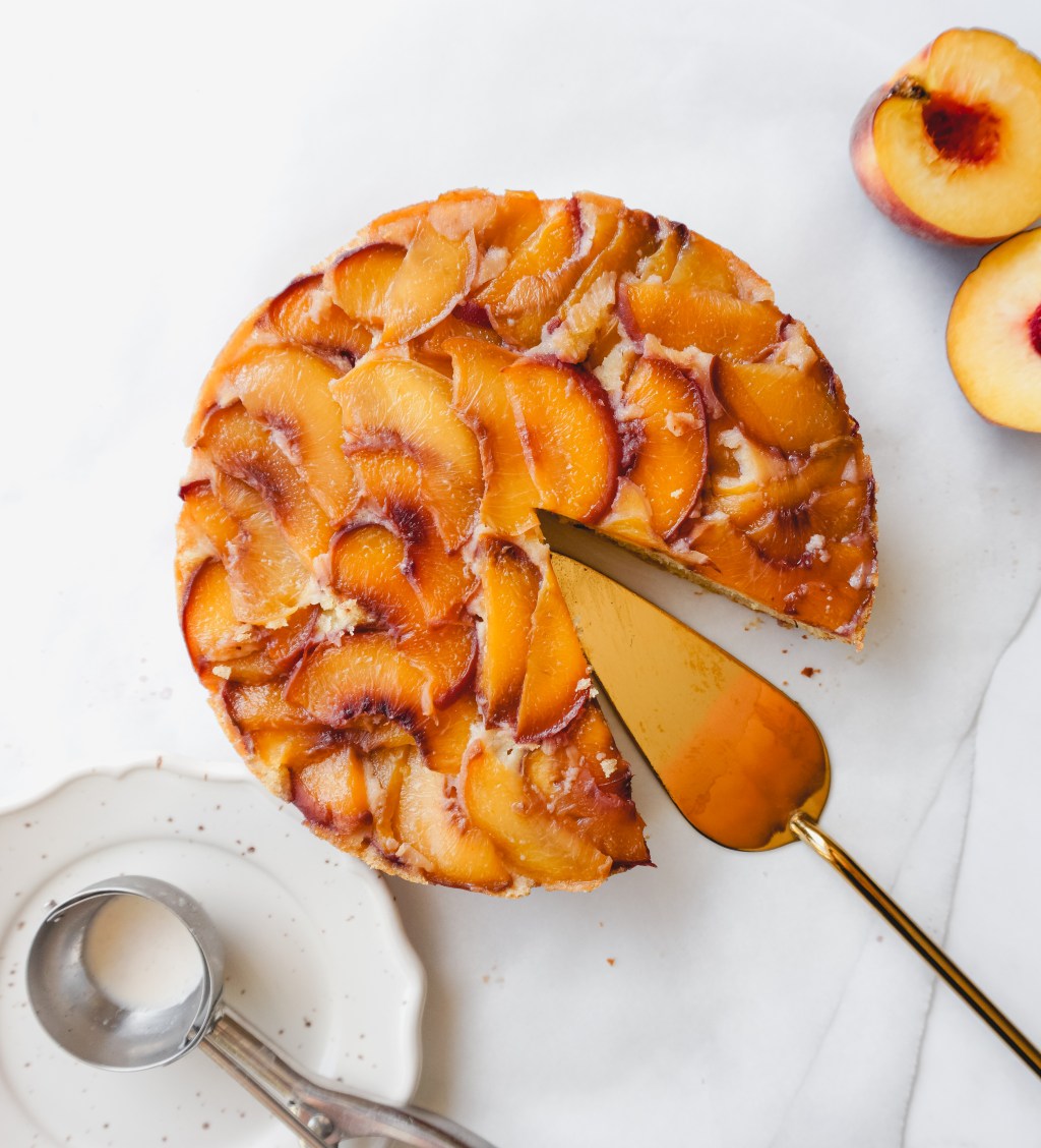 All of that says, one of the things I most look forward to during the year is peach season, I love peaches, I genuinely could put them on everything and it would probably not be enough. This is why I’m really holding onto peach season as much as I can and this upside down cake is a clear example of that.