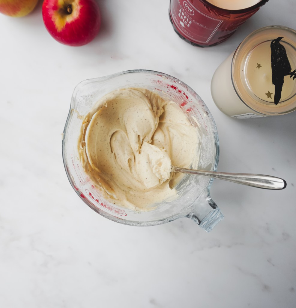 - Once your butter has cooled down, whisk in the rest of the ingredients using a whisk or a hand mixer and spread over your rolls.