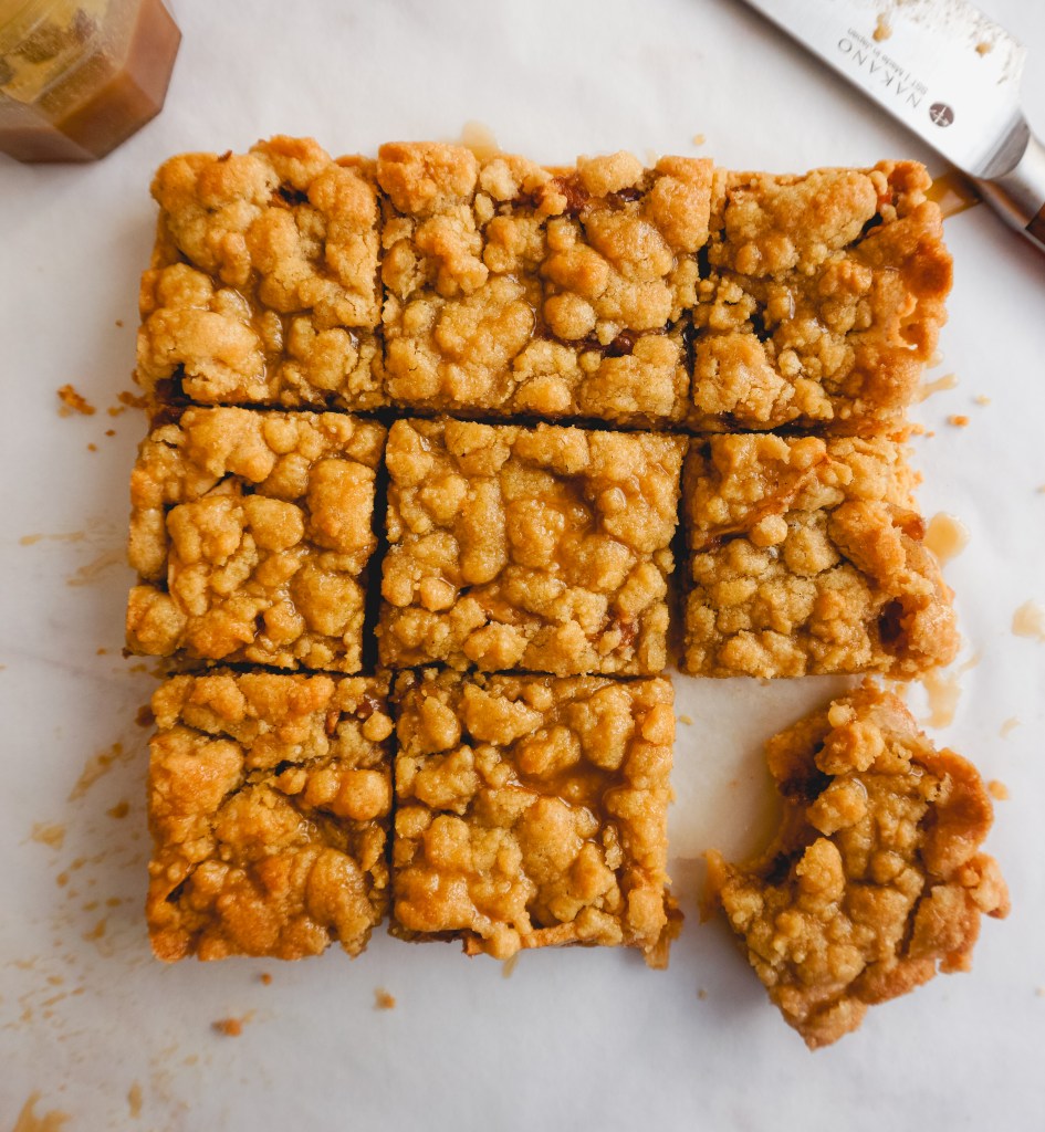 The only thing that’s better than an apple crumble bar, it’s an apple crumble bar topped with a generous layer of delicious salted caramel.