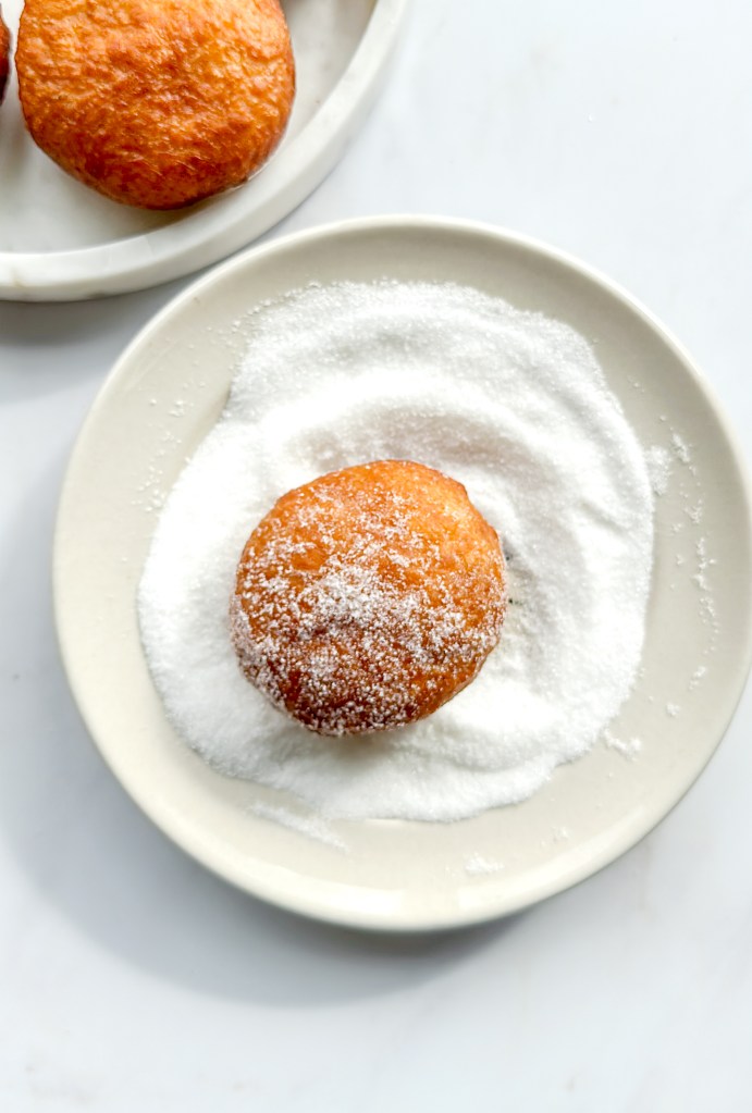 - Once your donuts are ready, roll them in the sugar and place them on a wire rack to cool down.