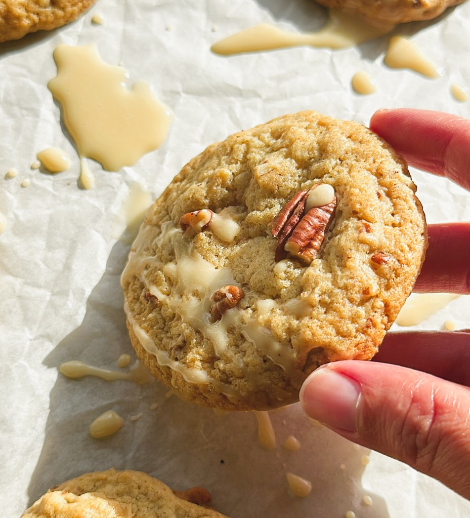 Chocolate chip cookies step aside, not everything is about you! These cookies contain all the staple autumn flavours – soft, chewy, and loaded with crunchy pecans and real maple syrup for that warm, rich flavor we crave this time of year. And as if that wasn’t enough, they’re topped with a sweet maple glaze that takes each bite over the top. Perfect for fall afternoons, holiday gatherings, or just because, these cookies are super easy to make and taste like a hug in dessert form. Try them out, and watch them become everyone’s new favourite treat!